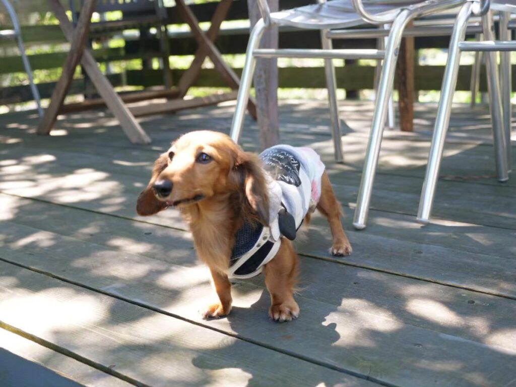 到着してすぐ、敷地全体の雰囲気が思っていたより広くて驚きました。緑が多く、犬連れでも気兼ねなく過ごせそうな空気感があって、来る前の不安がすーっと消えた気がします。